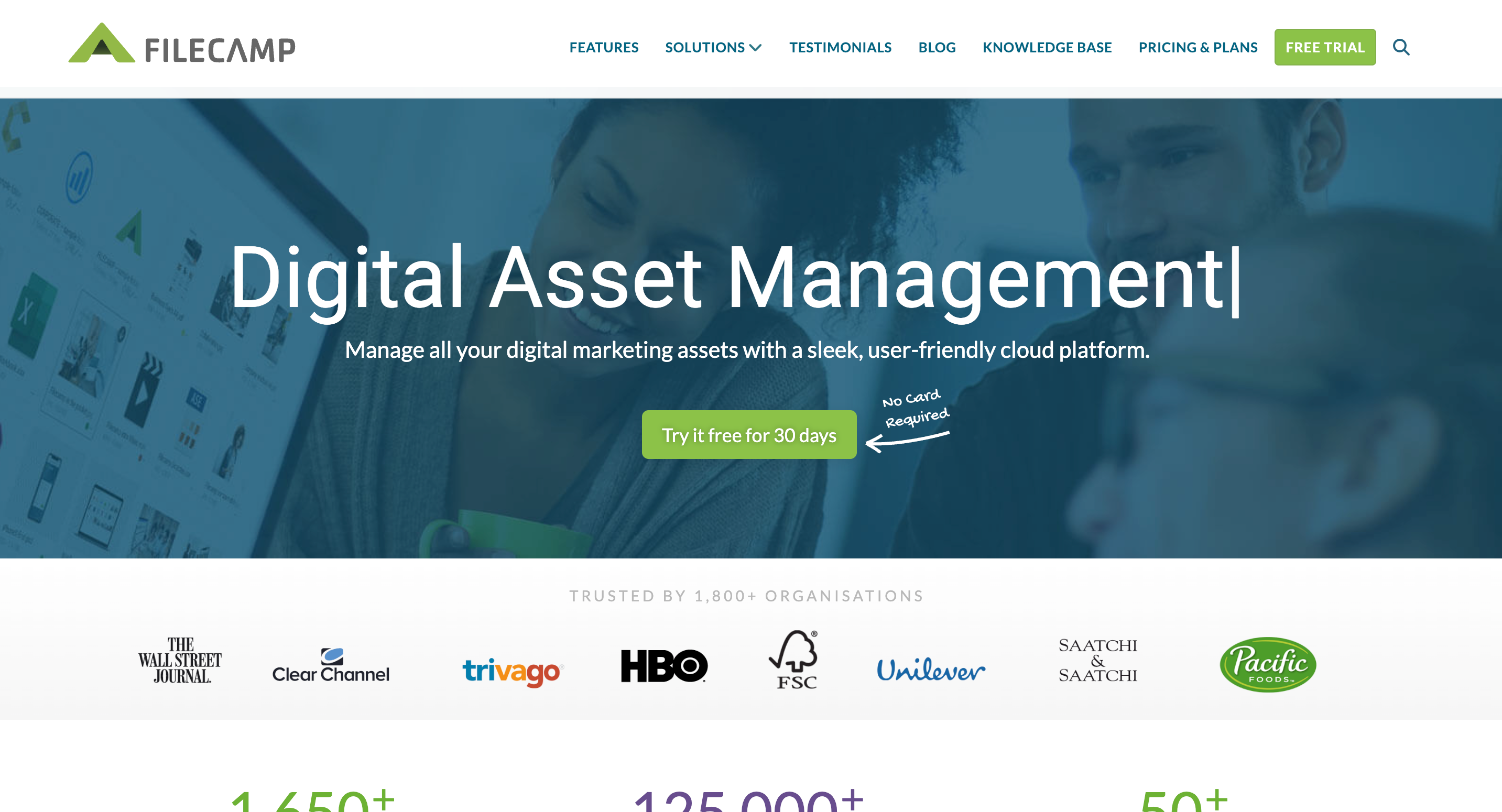Filecamp is a DAM platform for organising and sharing brand assets. White-label and custom domain require the most expensive plan.