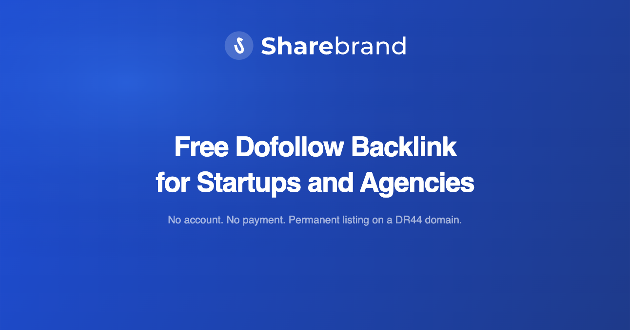 Get a free permanent dofollow backlink on Sharebrand.com, a DR44 domain. No account, no payment, no catch. Submit your startup or agency in under a minute.